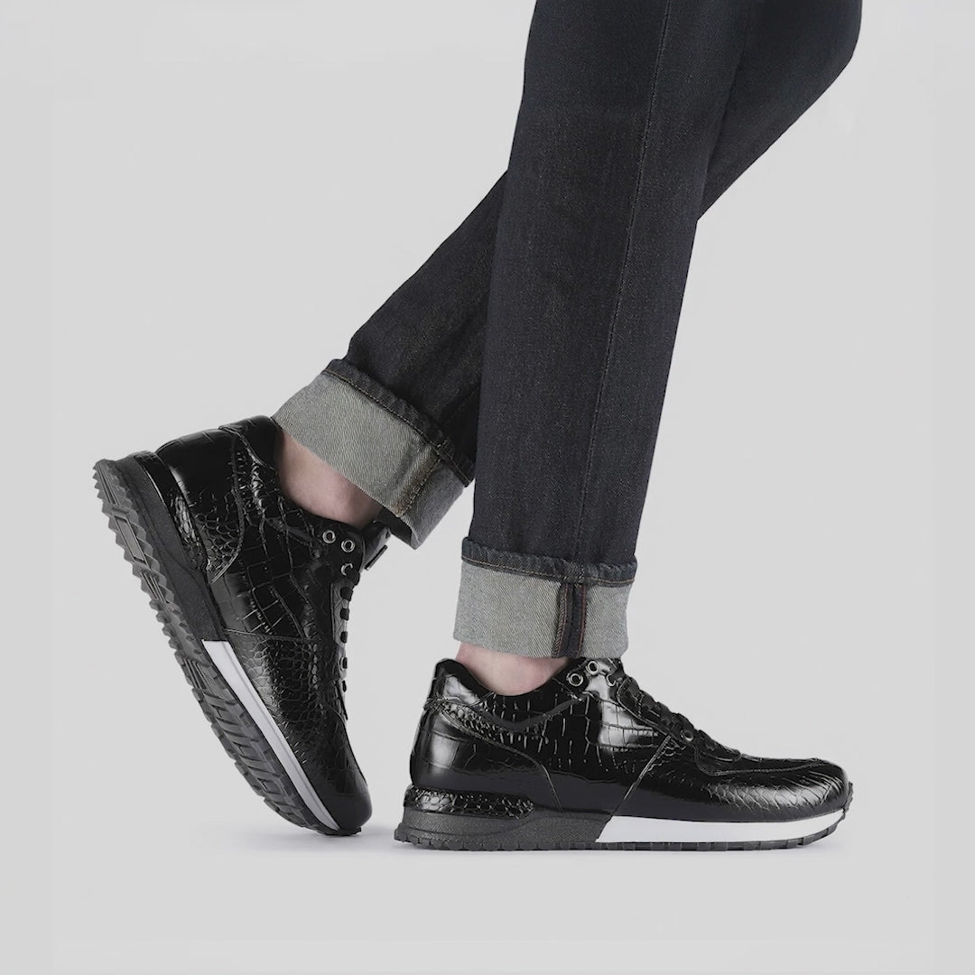 Men's Black Croc-Print Leather Sneaker