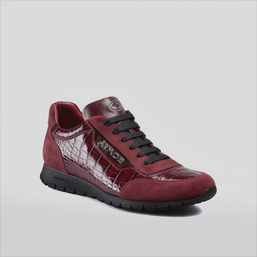 Men's Maroon Croc-Embossed Leather Sneaker
